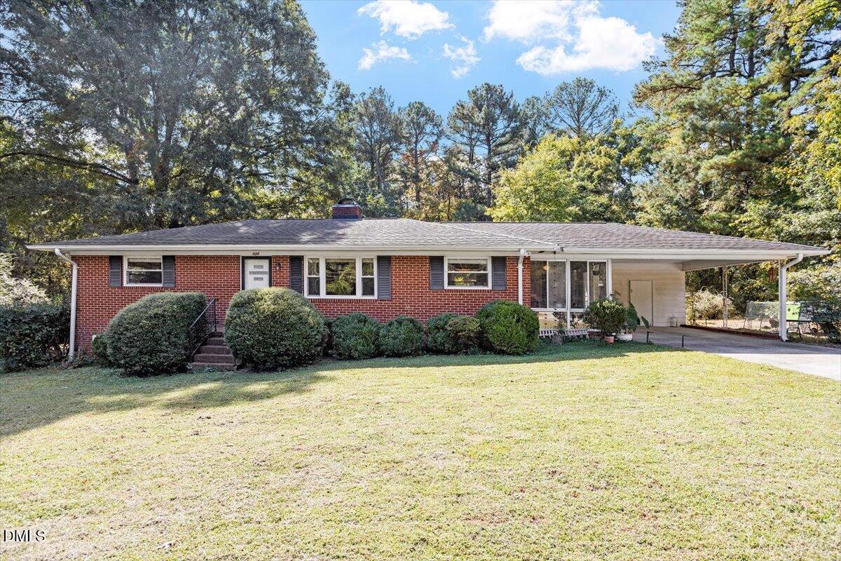 Charming and well-maintained 3-bedroom, 1.5-bath ranch situated on a spacious and level .56-acre lot—no HOA! This move-in ready home features refinished original hardwood floors, remodeled bathrooms, and updated recessed lighting in the kitchen and front living room. Recent upgrades include a new roof, encapsulated crawlspace, new water heater, new attic insulation (installed with solar), and conversion from oil to natural gas heat. The owners have added 14 paid-off solar panels for energy efficiency and comfort. Fresh paint throughout, with several rooms updated within the past year. The laundry room was renovated in 2025 with tile flooring, shelving, and a new washer/dryer combo. Additional features include Google Fiber 1 Gig internet, public water/sewer & well for watering shrubbery, and tasteful built-in shelving in the main bedroom. The large flat yard offers great outdoor space with room to grow. A perfect blend of updates and original charm! Third Bedroom/Bonus was built prior to the sellers purchase of the property. Permits could not be located for the Third bedroom/bonus addition in the Durham County Permit portal. Square footage for the unpermitted bedroom/bonus is included in the overall square footage of the home. Work for the other noted renovations were permitted.